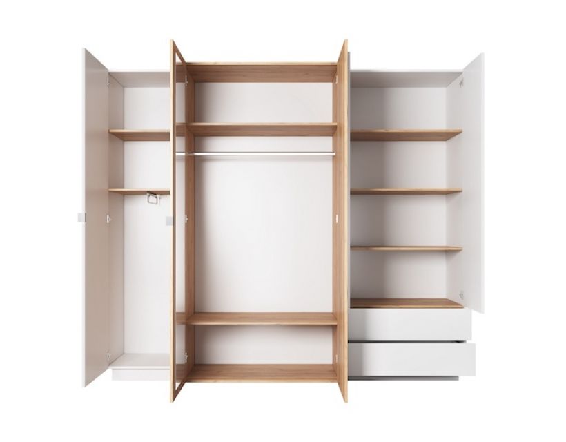 Ищете идеальное решение для хранения вашей одежды? Шкаф для одежды Perfect Home 3Д – это сочетание современного дизайна и практичности. Ее элегантный белый цвет в сочетании с дубом крафт золотым придает интерьеру изысканность, а 4-дверная конструкция обеспечивает достаточно простора для всех ваших вещей. Этот шкаф не только красив, но и чрезвычайно функциональн. Благодаря продуманной организации внутреннего пространства вы сможете легко найти все необходимое, не тратя время на поиски. Она оснащена разнообразными полками и вешалками, что позволяет сохранять одежду в порядке и удобстве.
