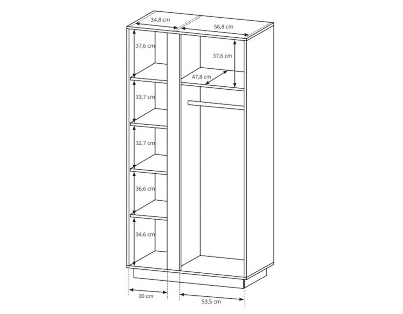 Этот 2-дверный шкаф имеет достаточно места для всей вашей одежды, благодаря продуманной организации внутреннего пространства. Вы сможете легко хранить как верхнюю одежду, так и повседневные вещи, не беспокоясь об их порядке. Высокое качество материалов гарантирует долговечность и надежность, что делает этот шкаф идеальным выбором для вашего дома.