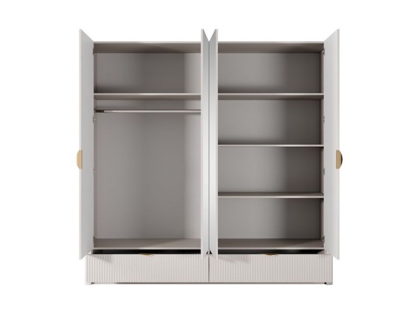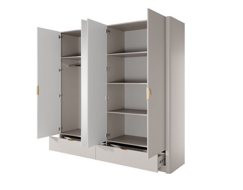 Четыре дверцы с зеркалом позволяют вам легко проверить свой образ перед выходом, а также визуально увеличивают пространство в комнате. Благодаря продуманной конструкции вы сможете организовать свою одежду так, как вам удобно, сохраняя порядок и стиль. Шкаф Perfect Home Ланте идеально подходит для любого интерьера, от классического до современного.