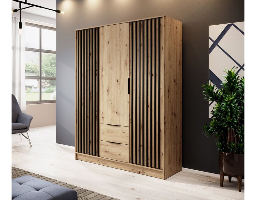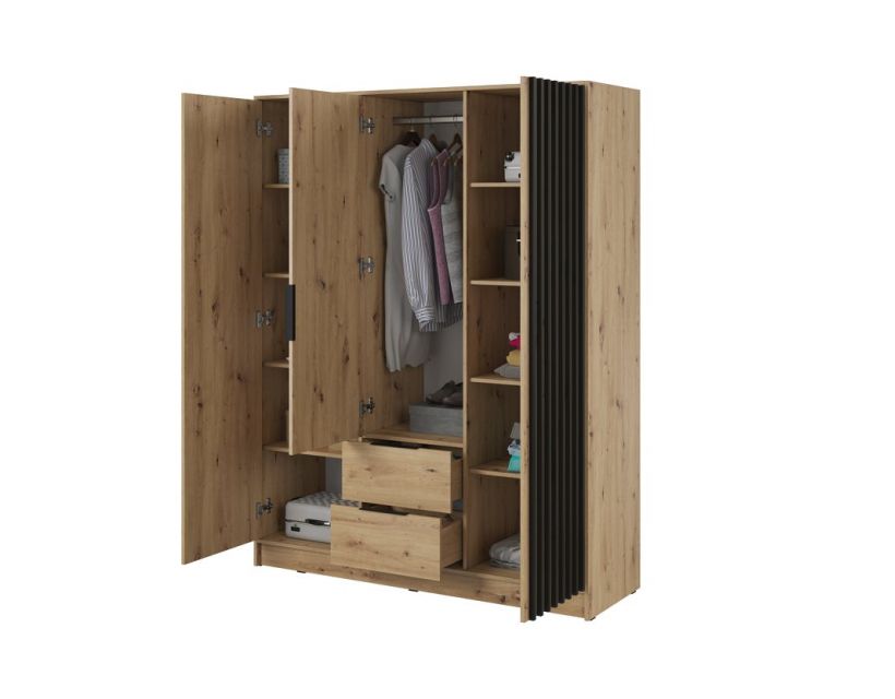 Откройте для себя идеальное решение для хранения вашей одежды со шкафом Perfect Home Нелли. Эта стильная 3-дверная модель, выполненная в элегантном сочетании дуба артизан и черного цвета, станет отличным дополнением к вашему интерьеру. Благодаря современному дизайну, шкаф не только обеспечит достаточно места для ваших вещей, но и придаст эстетическому виду любой комнате.