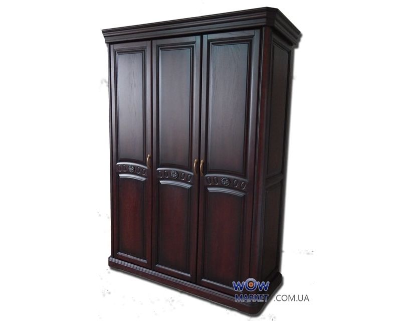 У занимающихся обустройством своего дома, обязательно появляется надобность купить качественный шкаф в спальню недорого. Универсальная мебель избавляет интерьер от кавардака. Классический шкаф для спальни из серии мебели Флоренция позволяет Вам без труда располагать и очень много важных мелочей и вещиц в нем. Выполнен в цвете каштан. Три дверцы глухие из массива дерева. Шкаф украшен ручной фрезеровкой. Шкаф изготавливается из массива натурального дерева дуба.