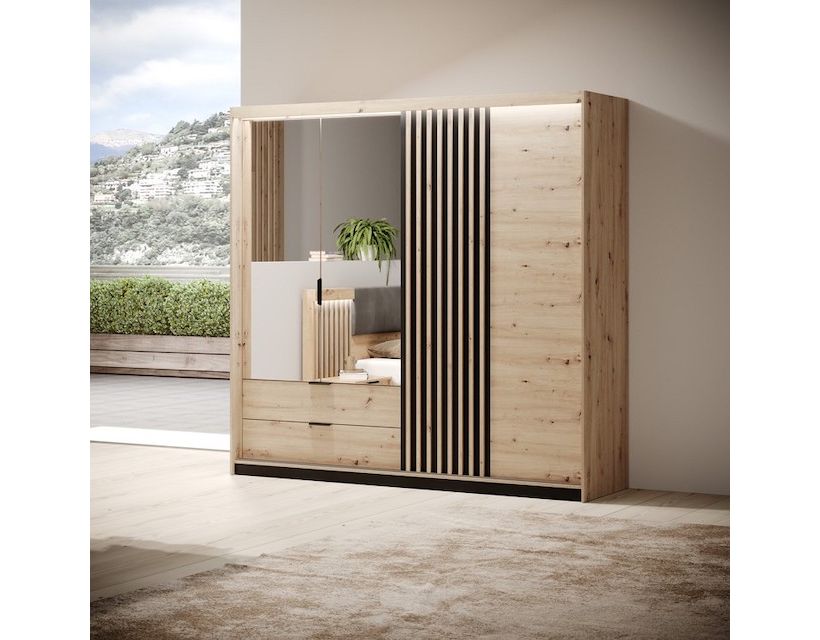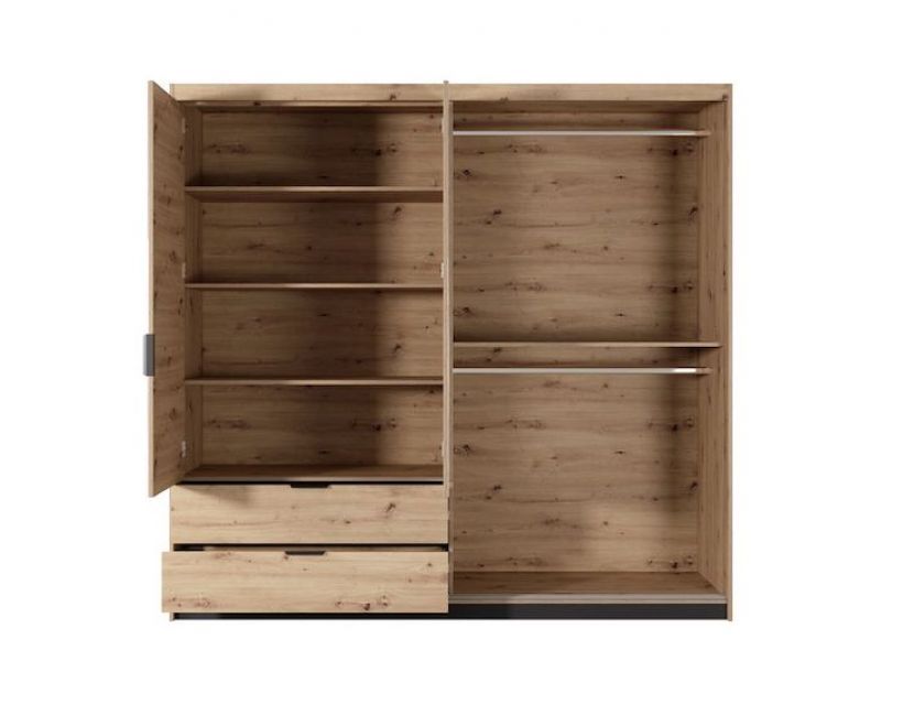Ваша спальня заслуживает лучшего и шкаф полукупе для одежды Perfect Home Талли станет идеальным дополнением к интерьеру. Благодаря современному дизайну и элегантному сочетанию цветов дуб артизан и антрацит, она не только выполняет практические функции, но и придает шарму вашему пространству.