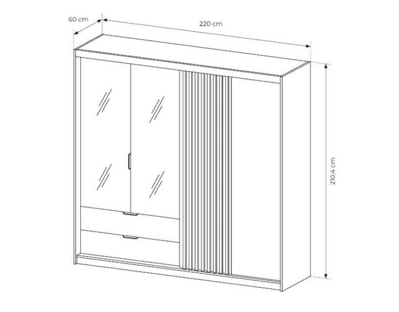 Этот 4-дверный шкаф с зеркалом 4D2S/220 предлагает большой объем для хранения одежды, обуви и аксессуаров. Зеркало не только визуально расширяет пространство, но и позволяет быстро оценить свой вид перед выходом из дома. Внутреннее наполнение шкафа обеспечивает удобный доступ к вашим вещам, а продуманная планировка позволяет максимально эффективно использовать пространство.
