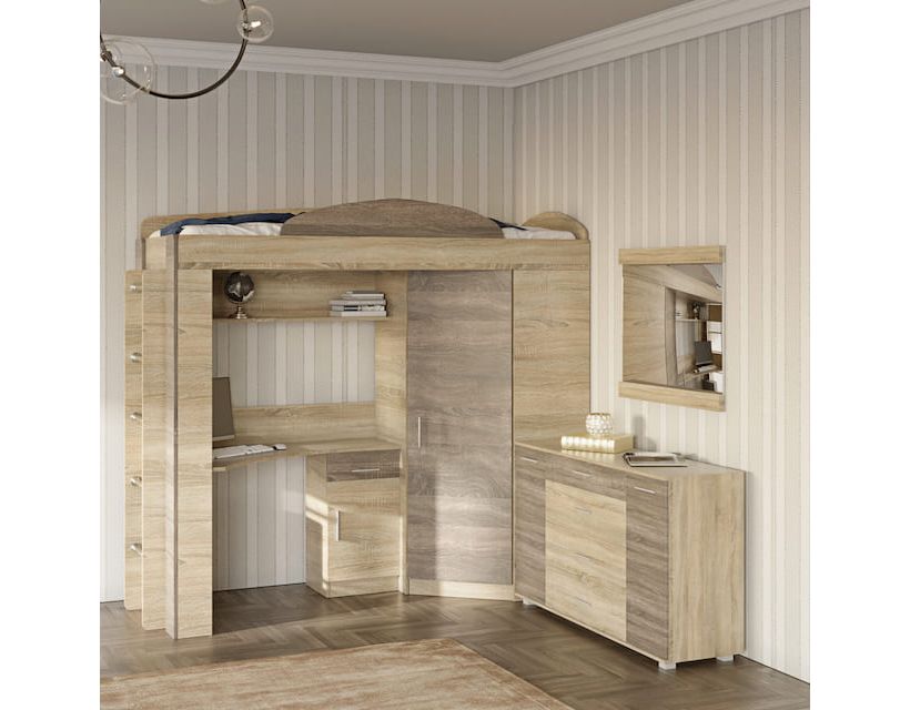 | Комплектация | С письменным столом, с комодом, со шкафом, с зеркалом |