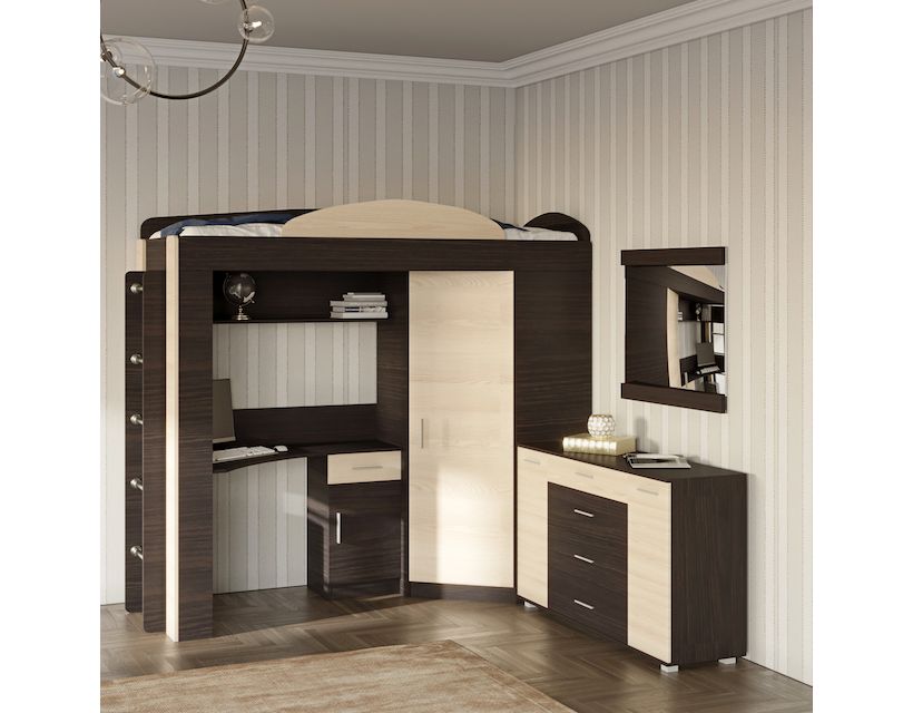 | Комплектация | С письменным столом, с комодом, со шкафом, с зеркалом |