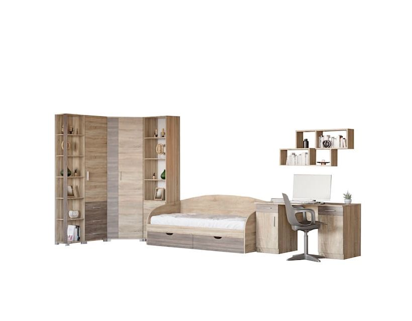 | Комплектация | Со шкафом, С пеналом открытым, С пеналом закрытым, С письменным столом, С угловым пеналом, С навесной полкой |
