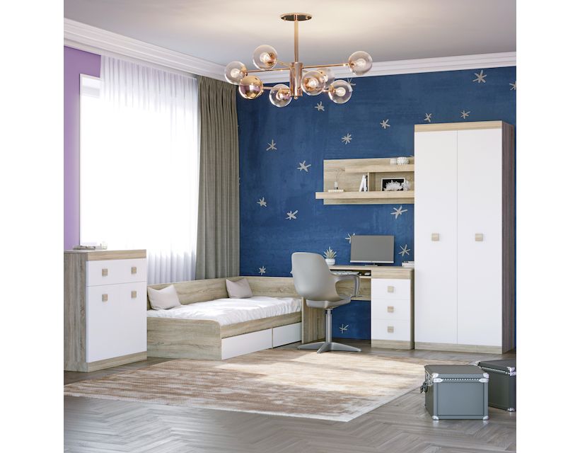 Ваш ребенок заслуживает комфорта и стиля в своей комнате! Комплект "Эверест Соната" создан специально для маленьких мечтателей, стремящихся к уюту и эстетике. Модульная система из пяти элементов позволяет легко адаптировать пространство под нужды вашего ребенка, обеспечивая функциональность и практичность. Дизайн в цветах дуба сонома и белого гармонично впишется в любой интерьер, даря ощущение легкости и свежести.