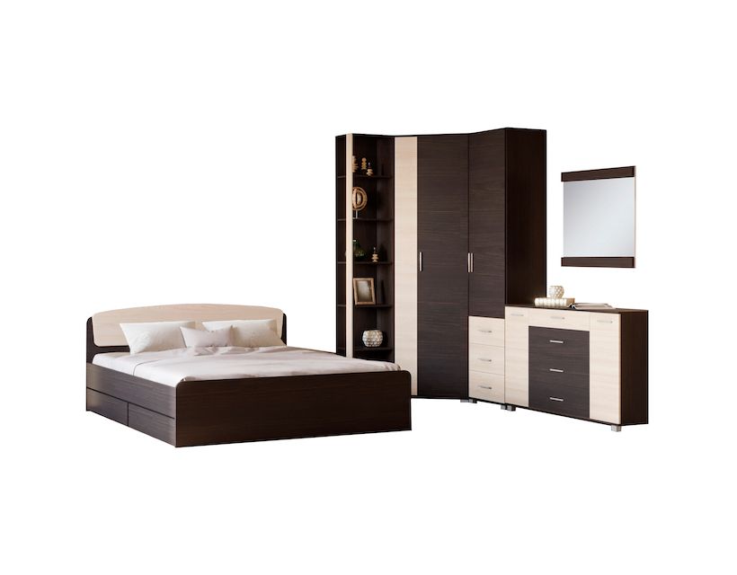 Корпус и фасады спального гарнитура выполнены из экологически чистого ЛДСП (уровень эмиссии Е1) швейцарской компании Kronospan.