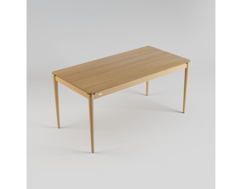 Ноги изготовлены из массива ясеня, что обеспечивает надежную стойкость и визуальную лёгкость. Столешница выполнена из МДФ, покрытого шпоном ясеня, что подчеркивает естественную текстуру дерева и придает теплу интерьеру.