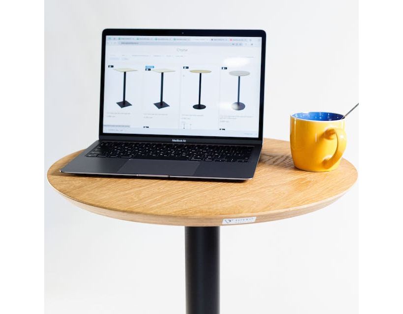 высокой стойки диаметром 60 мм с крепежной пластиной 200х200 мм ="ltr" role="presentation">столешницы из влагостойкой фанеры шпонированной натуральным дубом;