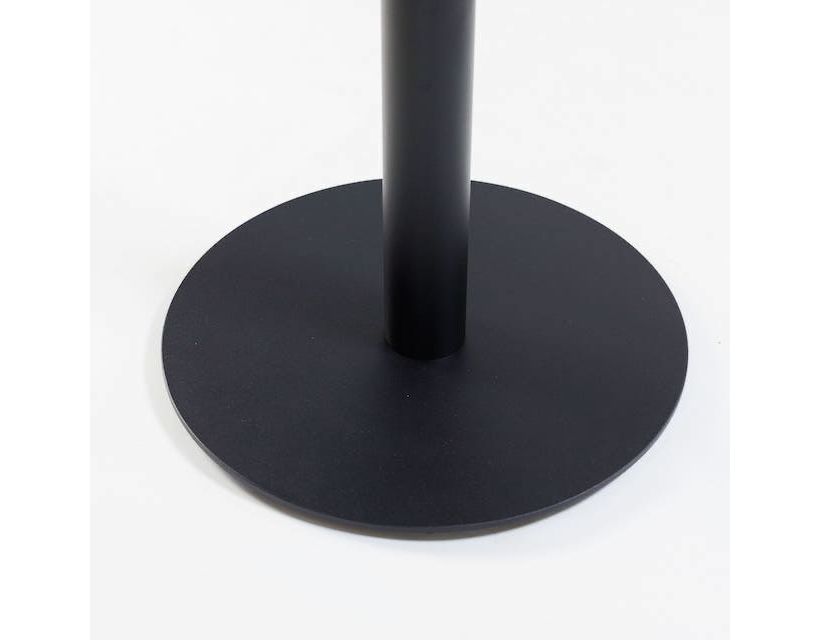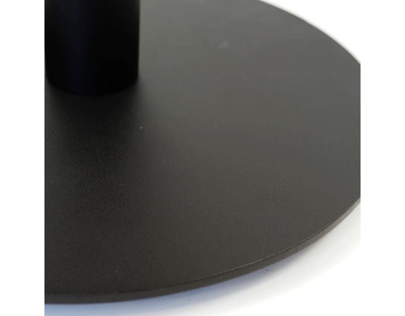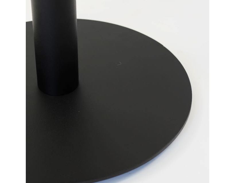 Опора стола состоит из нижнего основания диаметром 400 мм толщиной 6 мм с регулируемыми ножками, трубы диаметром 60 мм с толщиной стенки 1,5 мм, и крепежной пластины 200х200х4 мм. Покрывается порошковой краской. Это делает конструкцию устойчивой к отрицательному воздействию влаги и механическим повреждениям.
