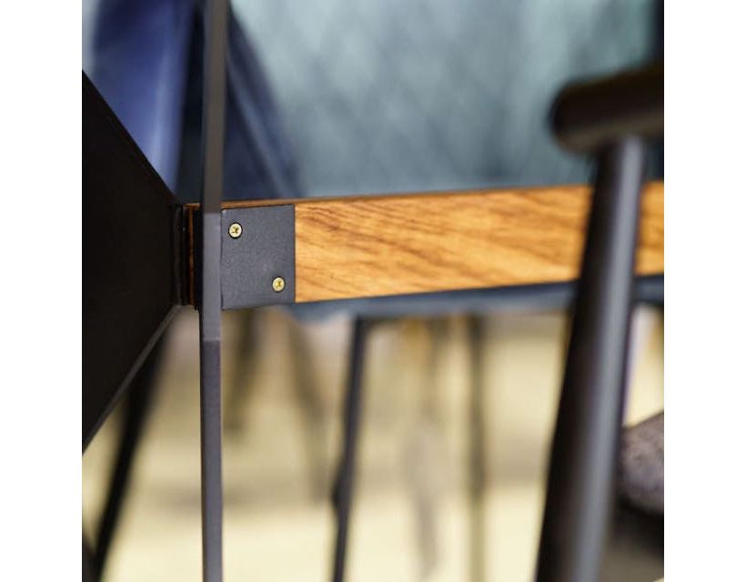 Во время производства используются исключительно высококачественные материалы, что делает модель не только привлекательной, но и долговечной. Устойчивые ножки выполнены из металла с порошковой покраской, а столешница из массива дуба.
