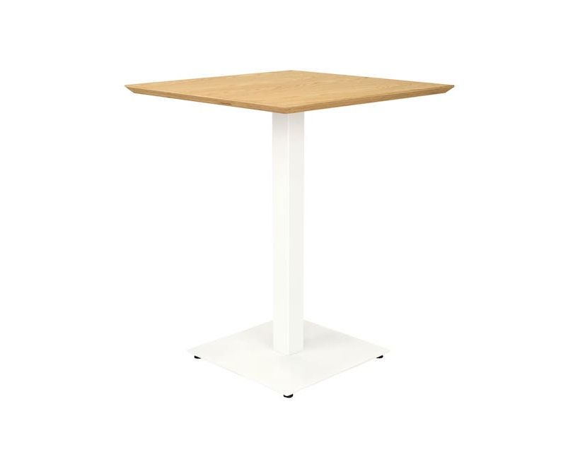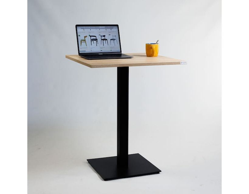 Металлический каркас стола состоит из двух частей. Основание 400х400 толщиной 6 мм. И квадратная стойка из трубы 60х60 мм, толщиной стенки 1,5 мм. К стойке приварена пластина для крепления столешницы. Опора стола выполняется из металла с порошковой покраской. Он делает стол более устойчивым к влаге и механическим повреждениям.
