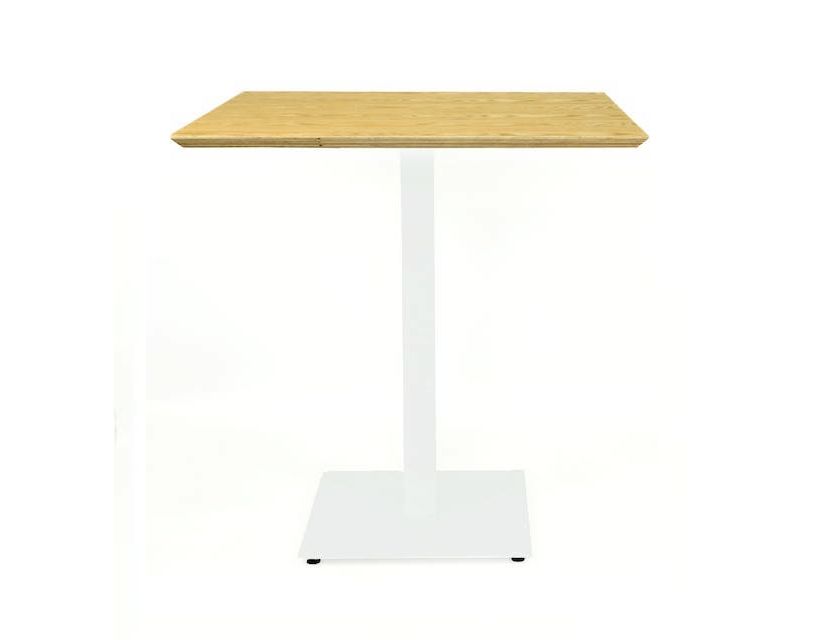 Металлический каркас стола состоит из двух частей. Основание 400х400 толщиной 6 мм. И квадратная стойка из трубы 60х60 мм, толщиной стенки 1,5 мм. К стойке приварена пластина для крепления столешницы. Опора стола выполняется из металла с порошковой покраской. Он делает стол более устойчивым к влаге и механическим повреждениям.