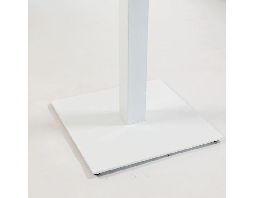 В изготовлении используются надежные и практичные материалы, имеющие долговечное покрытие. Металлическая опора выполнена с порошковой покраской, что делает ее устойчивой к влаге и другим отрицательным воздействиям. Столешница изготавливается из ламинированного ДСП толщиной 18 мм, поэтому имеет привлекательный внешний вид и неприхотлива в уходе.