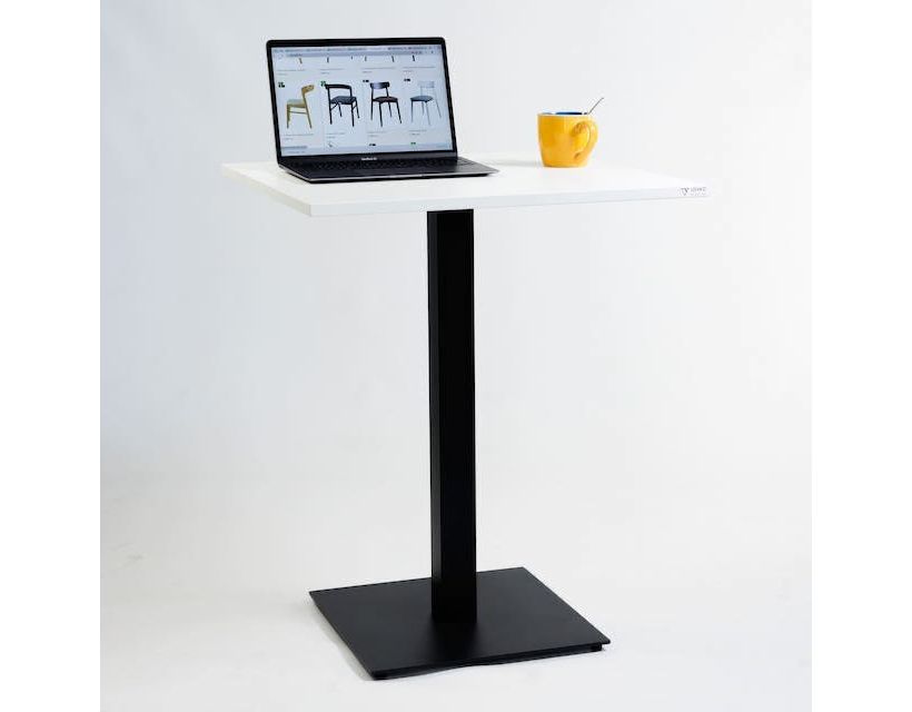 В изготовлении используются надежные и практичные материалы, имеющие долговечное покрытие. Металлическая опора выполнена с порошковой покраской, что делает ее устойчивой к влаге и другим отрицательным воздействиям. Столешница изготавливается из ламинированного ДСП толщиной 18 мм, поэтому имеет привлекательный внешний вид и неприхотлива в уходе.