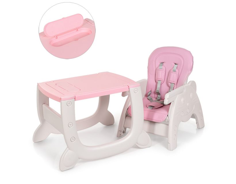 Характеристики: 2 в 1: Стульчик для кормления детский, стол + стульчик Съемный столик со съемной панелью Регулируется наклон спинки - 3 положения (сидя, полусидя, полулежа) Регулируется расстояние от спинки до столешницы - 3 положения Пятиточечный ремень безопасности Стильный дизайн Максимальная нагрузка 25 кг Габаритные размеры: Ширина: 59 см Глубина: 74 см Высота: 106 см Высота: нерегулируемая