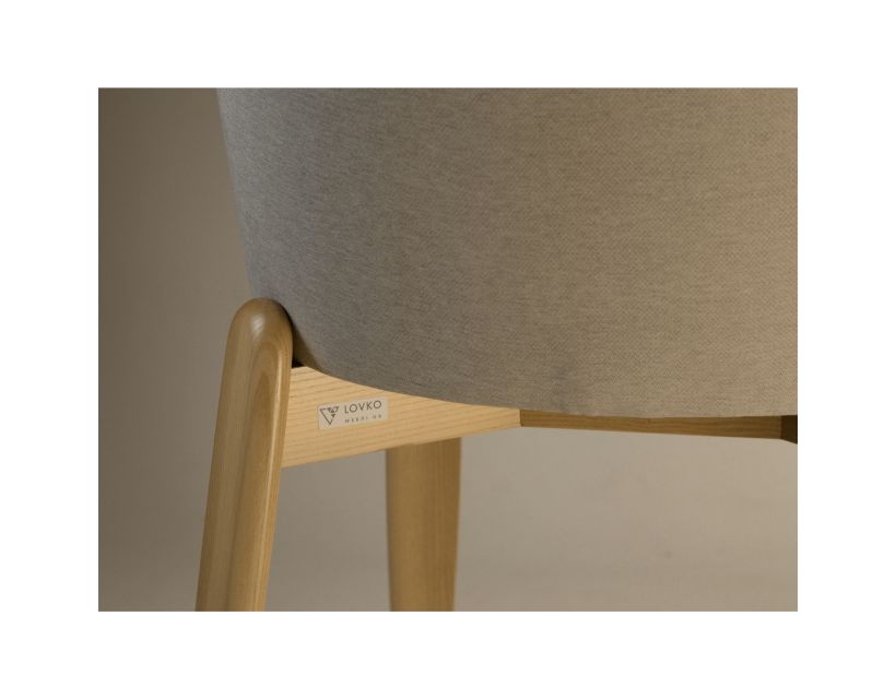 Каркас виготовлений з натурального ясена, що гарантує довговічність та благородний вигляд. Стілець доступний у будь-якому варіанті тканини за індивідуальним замовленням — ідеальний вибір для створення гармонійного інтер’єру у стилі, який підходить саме вам.