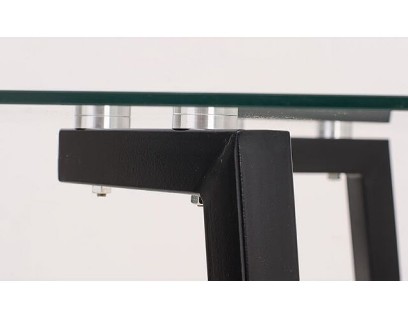 Особенность: каленое стекло+ крашенный метал, прозрачная столешница, черные ноги
