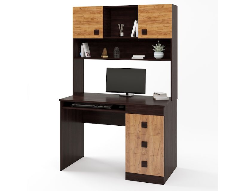 Ваша работа заслуживает лучшего! Письменный стол с надстройкой Эверест Соната не только подчеркнет ваш стиль, но и обеспечит комфорт и удобство при выполнении задач. Благодаря продуманному дизайну и элегантному сочетанию темного венге и дуба крафт золотого, этот стол станет настоящим украшением вашего рабочего пространства.