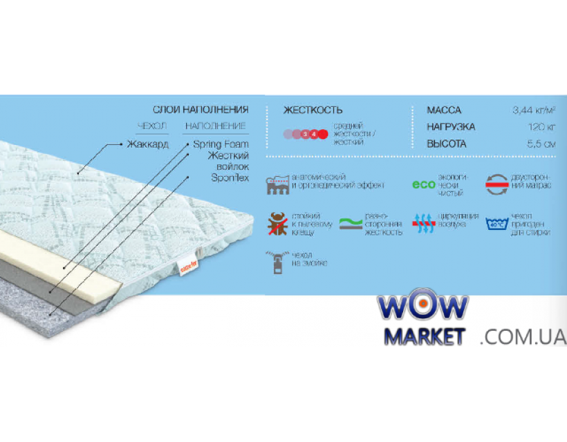 Двухсторонний матрас футон Дуэт от компании Ком-Фор выдерживает нагрузку до 120кг на одно спальное место. Данная модель матраса специализирована для выравнивания спальной плоскости дивана, которую матрас гарантирует хорошей для Вашего удобства жесткостью. С одной стороны матрас Дуэт твёрдый, а с иной стороны – средне твёрдый). Аккуратный матрас просто формируется и без особого труда транспортируется. Использованные материалы заполнения, благодаря особой структуре, оказывают ортопедическое действие. Также матрас Дуэт оказывает анатомическую поддержку абсолютно всем зонам позвоночника, что считается профилактикой болезней спины. Размерность матраса Дуэт Вы сможете избрать соответствующие спальной плоскости Вашего дивана. Производитель дает официальную гарантию на матрас, действующую до 5 лет. Матрас имеет чехол который пошит из ткани «жаккард» – делается путем трудного переплетения волокон естественной, искусственной либо смесовой пряжи. Кроме броского дизайна, владеет прочностью, долговечностью, небольшим весом и износостойкостью. Материал SpringFoam – латексированная пена завышенной плотности, владеющая ортопедическими качествами. Использованный материал дает верную нагрузку на любую зону Вашего тела, считается гигиеничным, экологически чистым и гигроскопичным. Материал Sponflex – пластичный и мягенький использованный материал для доборной упругости, сделанный на базе регенерируемых волокон джута, льна и хлопка.