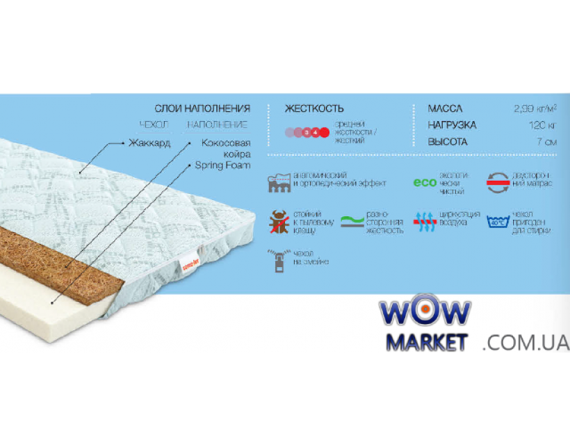 Тонкий двухсторонний матрас Тайм от компании Ком-Фор рекомендуемой перегрузкой до 120кг на одно спальное пространство, сотворен для увеличения удобства Вашего дивана или кровати: выравнивания плоскости, модифицирование жесткости на пригодную для Вашей спины (матрас твёрдый с одной стороны и владеет средней жесткостью с иной).