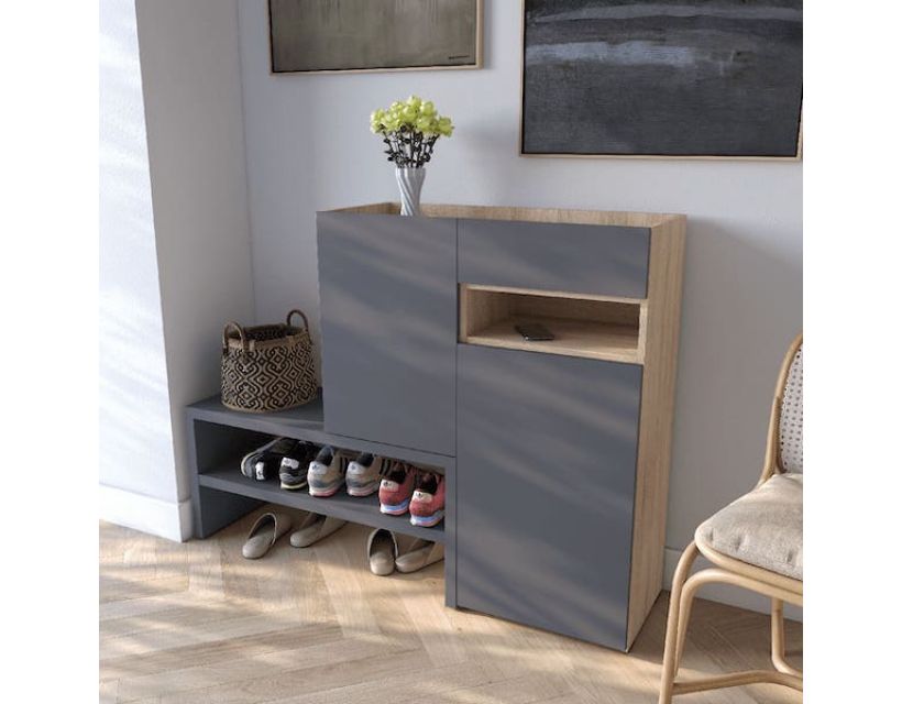 Тумба оснащена вместительными отделениями, которые позволяют аккуратно хранить обувь, защищая ее от пыли и повреждений. Компактные размеры делают ее идеальной даже для небольших прихожих.
