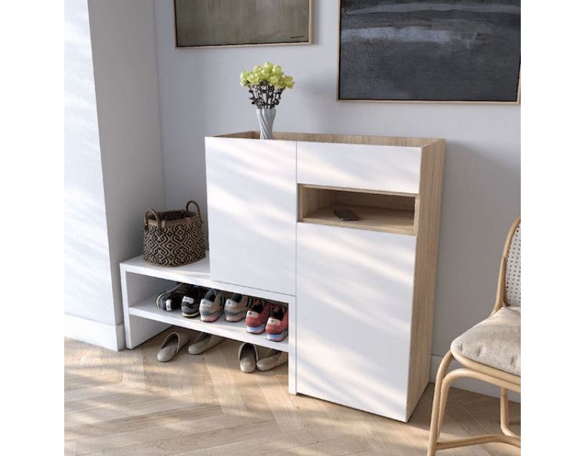 Тумба оснащена вместительными отделениями, которые позволяют аккуратно хранить обувь, защищая ее от пыли и повреждений. Компактные размеры делают ее идеальной даже для небольших прихожих.
