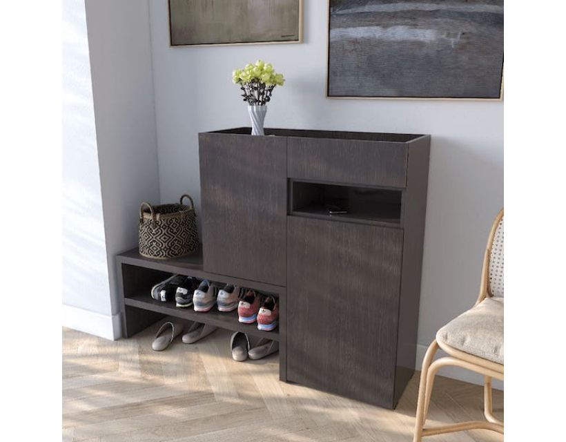 Тумба оснащена вместительными отделениями, которые позволяют аккуратно хранить обувь, защищая ее от пыли и повреждений. Компактные размеры делают ее идеальной даже для небольших прихожих.
