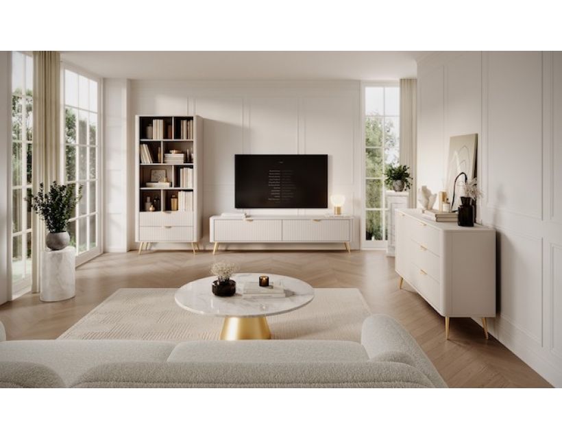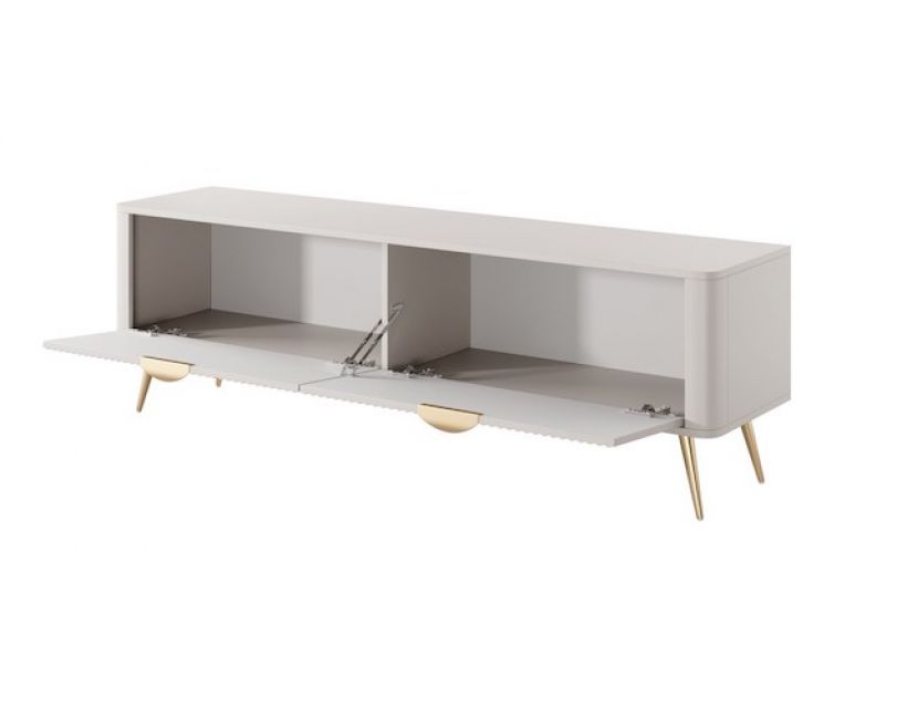 Откройте для себя элегантность и стиль с тумбой под телевизор Perfect Home Ланте. Этот утонченный мебельный элемент станет идеальным дополнением вашего интерьера, придавая ему современный вид. Бежевый цвет тумбы легко впишется в любой дизайн комнаты, создавая уютную атмосферу для отдыха и развлечений. Изготовленная из качественных материалов, тумба под телевизор не только стильная, но и практичная. Ее 2-дверная конструкция обеспечивает достаточно места для хранения медиааппаратуры, книг и других аксессуаров. Золотые ножки придают мебели утонченность и легкость, подчеркивая ее современный вид.