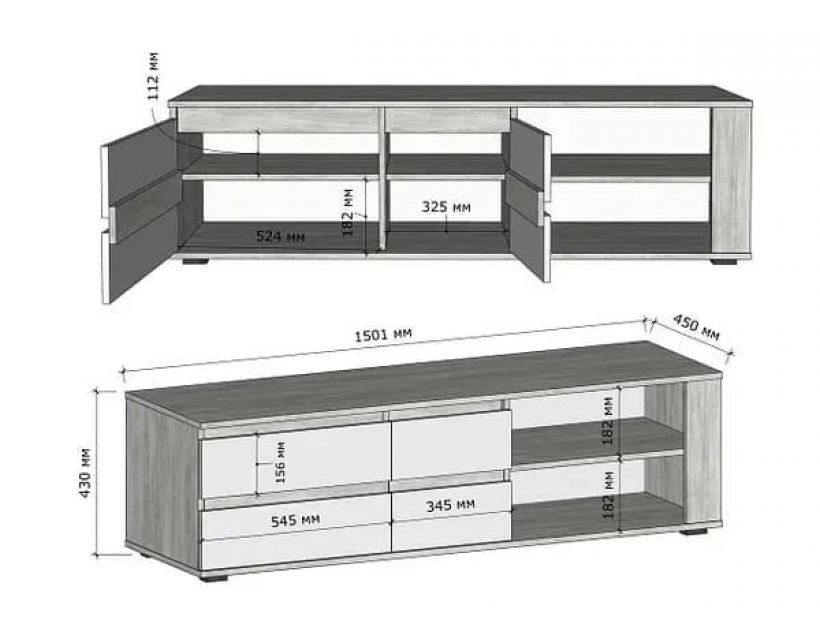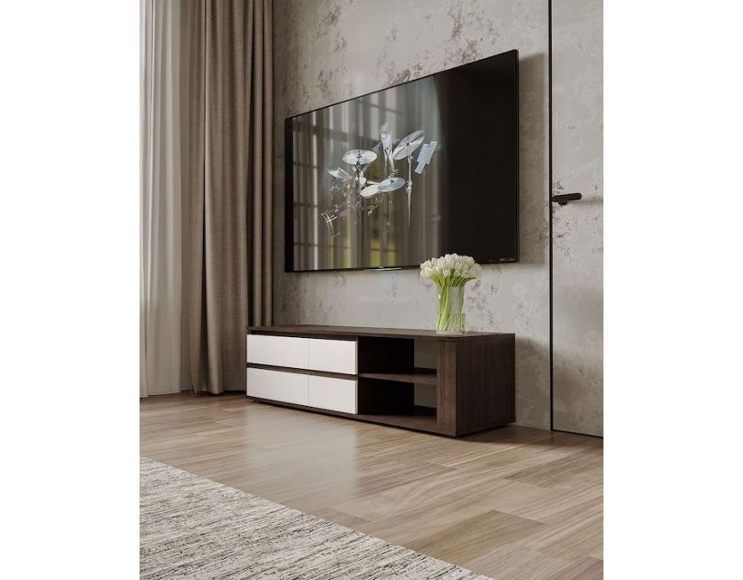 Этот предмет мебели не только придает интерьеру современный вид, но и является практичным решением для хранения. Тумба оснащена просторными полками и выдвижными ящиками, что позволяет разместить мультимедийные устройства, аксессуары и другие необходимые вещи.
