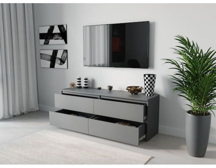 Этот предмет мебели не только придает интерьеру современный вид, но и является практичным решением для хранения. Тумба оснащена просторными полками и выдвижными ящиками, что позволяет разместить мультимедийные устройства, аксессуары и другие необходимые вещи.