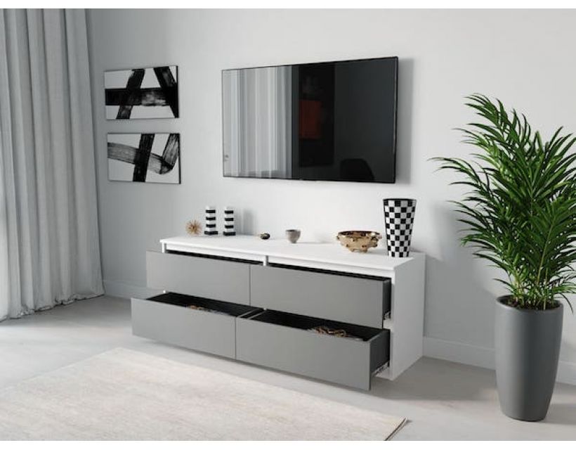 Этот предмет мебели не только придает интерьеру современный вид, но и является практичным решением для хранения. Тумба оснащена просторными полками и выдвижными ящиками, что позволяет разместить мультимедийные устройства, аксессуары и другие необходимые вещи.
