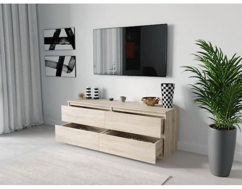 Этот предмет мебели не только придает интерьеру современный вид, но и является практичным решением для хранения. Тумба оснащена просторными полками и выдвижными ящиками, что позволяет разместить мультимедийные устройства, аксессуары и другие необходимые вещи.