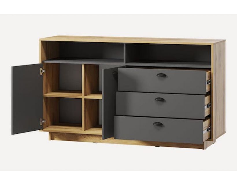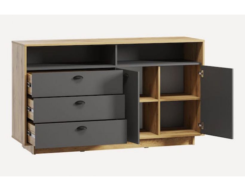 Этот предмет мебели не только придает интерьеру современный вид, но и является практичным решением для хранения. Тумба оснащена просторными полками и выдвижными ящиками, что позволяет разместить мультимедийные устройства, аксессуары и другие необходимые вещи.