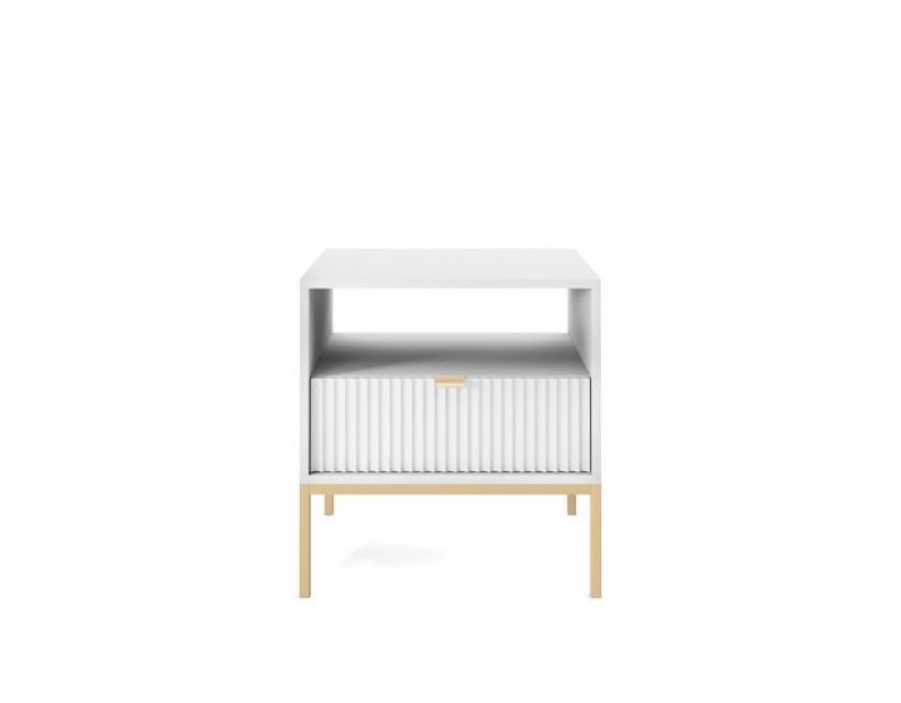 Ищете стильный и функциональный элемент для вашей спальни? Тумба прикроватная Perfect Home Новая/Nova станет идеальным дополнением к вашему интерьеру. Ее элегантный белый цвет и современный дизайн с золотыми ножками придают помещению изысканность и уют.