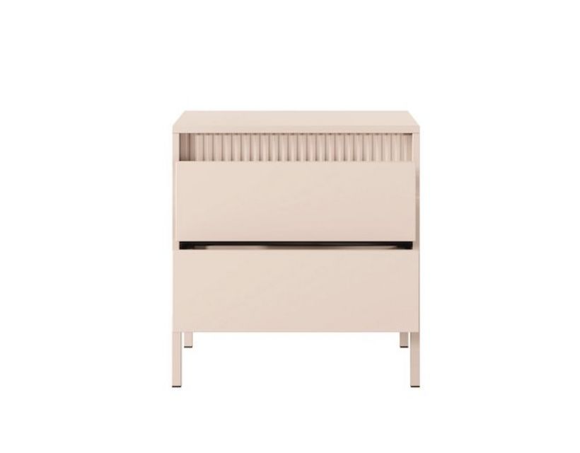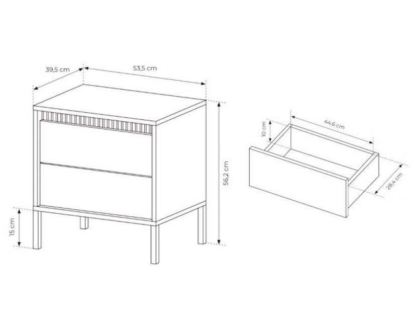 Тумба оснащена двумя просторными ящиками, позволяющими удобно хранить все необходимые мелочи под рукой. Вы можете легко организовать пространство, сохраняя порядок в комнате. Благодаря продуманной конструкции, ящики открываются плавно и без труда, что делает пользование ими максимально комфортным.