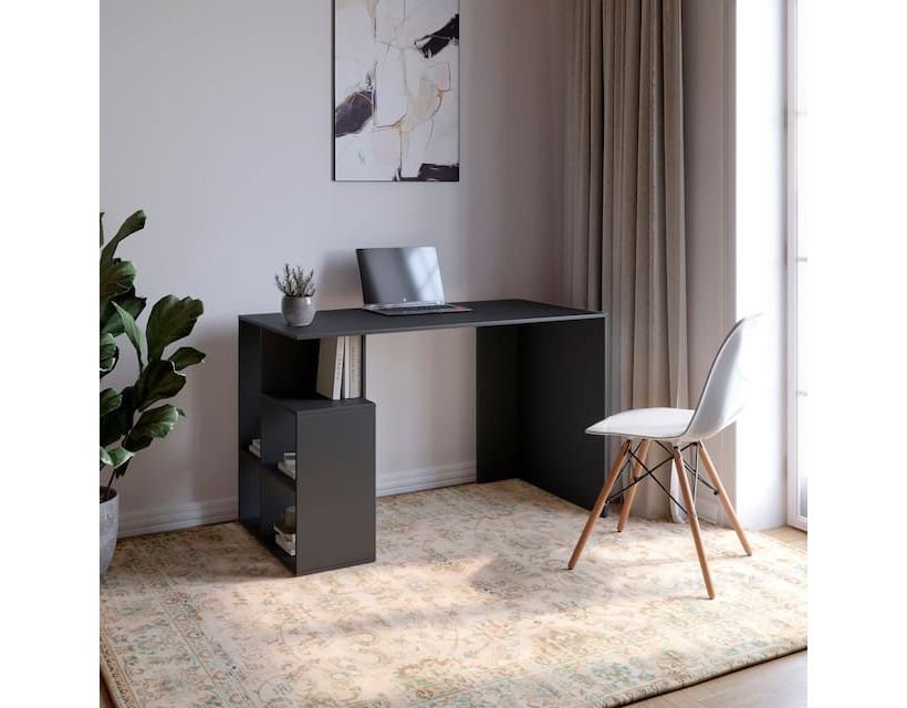 Відкрийте для себе письмовий стіл М-ЗОН Джеко, що поєднує в собі елегантність і функціональність. Його сучасний дизайн в антрациті ідеально впишеться в будь-який інтер'єр, створюючи затишну атмосферу для роботи чи навчання. Завдяки продуманій конструкції цей стіл не тільки виглядає стильно, але й забезпечує достатньо місця для ваших робочих матеріалів та особистих речей.