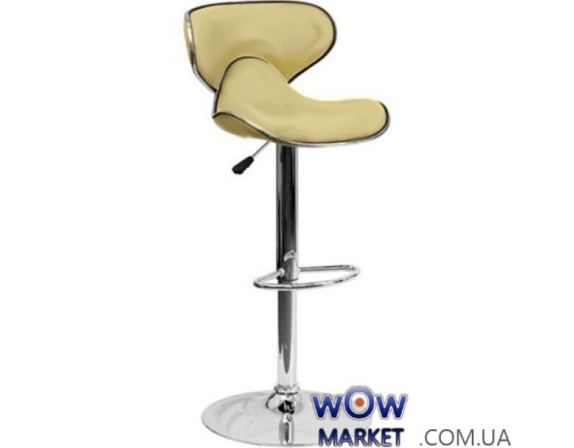 Барный стул, табурет, материал кожзам, цвет бежевый, окантовка серебристого цвета, высокая спинка, хромированное основание, регулируется по высоте, подножка.