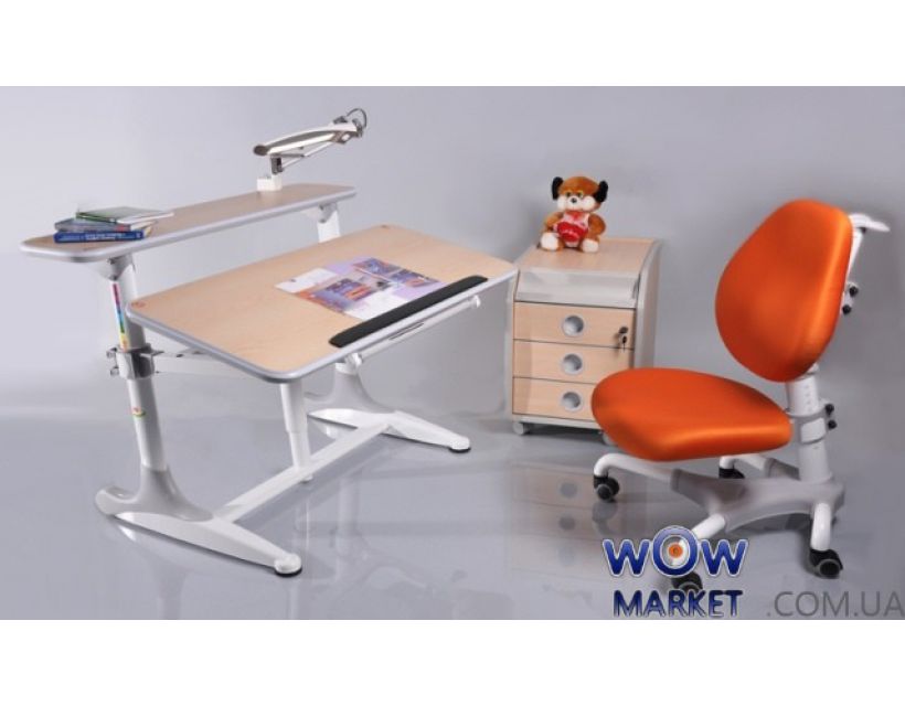 Детская парта BD-405 регулируется по высоте и изменяет угол наклона столешницы. Столик изменяет высоту от 500 мм до 760 мм.На ножках стола имеется маркировка роста ребенка с цветным разделением соответствующим санитарно-гигиеническим требованиям для детей, что поможет правильно подобрать нужную высоту стола. Усторойство газ-лифт Stabilus помогает легко и просто изменять высоту стола. Мягкие колеса на ножках позволяют легко перемещать стол не повреждая покрытие пола. Неподвижная полка позволит удобно разместить все необходимые вещи ( книги , монитор , принтер). Покрытие стола устойчиво к царапинам ,его легко содержать в чистоте. Передняя часть стола изменяет угол наклона от 0 градусов до 35 градусов. По переднему краю стола установлен резиновый держатель который препятствует соскальзыванию предметов. Под столешницей есть выдвижной ящик для канцтоваров. Столешница может быть цвета клен или белая , ножки белые с серыми накладками. Эта модель отличается от BD-305 наличием выдвижного ящика и отсутствием переднего пенала. Добавилась резиновая накладка на переднем крае столешницы, которая препятствует скатыванию предметов со столешницы. Предлагается два варианта расцветок столешницы - клен и белый. Стол очень прочный и долговечный, толщина столешницы 30мм. Даже через много лет детская парта BD-405 будет выглядеть как новая. Благодаря своей универсальности и возможностям регулировки, ее можно назвать трансформером.