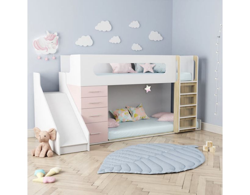 Размеры: Высота 1215 мм Длина 2600 мм Глубина 1500 мм Высота бортика 300 мм Спальные места 700 мм*1700 мм Благодаря огромному выбору цветового решения, вы подберете именно ту модель, которая понравится вашему ребенку. Такая кровать поразит вас своей компактностью, вместительностью и практичностью. Цвет и размер можно подобрать индивидуально по желанию клиента. Данный товар изготавливается под заказ. Срок изготовления зависит от загруженности завода. Цвета на выбор в ассортименте. Возможно изготовление в комбинации из нескольких цветов. Двухъярусная детская кровать чердак с горкой для двоих детей с выдвижными ящиками Если вы хотите, чтобы в комнате у Ваших детей было больше пространства, Вам нужно приобрести двухъярусную кровать. Она отлично подойдет в комнату как для девочек, так и для мальчиков. Цвет и размер можно подобрать индивидуально по желанию клиента. Дополнительно к базовой модели мы можем установить для Вашего удобства: ✔Дополнительный ортопедический матрас. ✔ Также рекомендуем Вам выбрать постельное белье к кроватке ЗДЕСЬ Цену на дополнительные позиции уточняйте у менеджера.