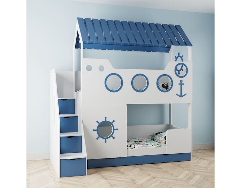 Розміри: Висота 2450 мм. Довжина 2330 мм. Глибина 932 мм. Спальні місця 800 мм * 1900 мм. Колір та розмір можна підібрати індивідуально за бажанням клієнта. Завдяки величезному вибору колірного рішення ви підберете саме ту модель, яка сподобається вашій дитині. Таке ліжко вразить вас своєю компактністю, місткістю та практичністю. Колір та розмір можна підібрати індивідуально за бажанням клієнта. Цей товар виготовляється на замовлення. Термін виготовлення залежить від завантаженості заводу. Кольори на вибір в асортименті. Можливе виготовлення у комбінації з кількох кольорів. Дитяче ліжко для двох «Будиночок моряка» з висувними ящиками ДКД 50 Колір та розмір можна підібрати індивідуально за бажанням клієнта. Додатково до базової моделі ми можемо встановити для Вашої зручності: ✔Додатковий ортопедичний матрац.