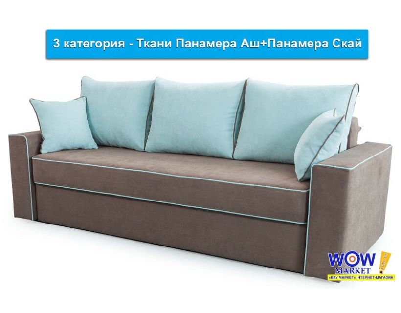 Євродиван «Майамі» стандартних розмірів: 228х76х96. Він легко помістити в вітальні. Також підійде для спальної кімнати.