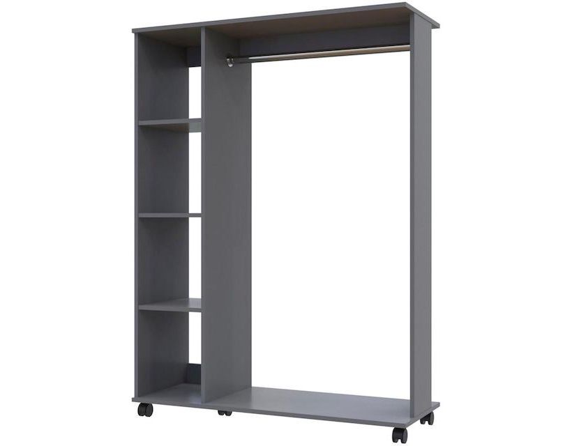 Стійка оснащена чотирма полицями для зберігання одягу, аксесуарів та інших речей, що забезпечує комфортне та зручне використання. Виготовлена з високоякісного ламінованого ДСП від швейцарського виробника Swiss Krono, стійка є надійною і довговічною, гарантуючи вам довгу службу і естетичний зовнішній вигляд.