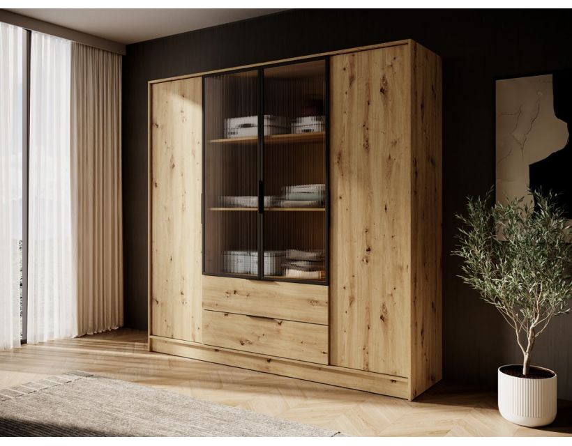 Відкрийте для себе ідеальне рішення для вашого простору з гардеробною шафою Perfect Home Келлі. Ця 4-дверна модель з центральними прозорими дверцятами не тільки забезпечить зручний доступ до вашого одягу, але й додасть елегантності вашому інтер'єру. Дуб артизан у поєднанні із сучасним дизайном робить цю шафу справжнім акцентом у будь-якій кімнаті. Завдяки додатковим полицям, ви зможете організувати свій одяг та аксесуари максимально ефективно. Кожна деталь продумана до дрібниць, що дозволяє легко зберігати речі гаразд. Шафа Perfect Home Келлі допоможе вам створити затишок і порядок у вашому будинку, роблячи щоденне вбрання більш простим і приємним. Виберіть Perfect Home Келлі та насолоджуйтесь ідеальним порядком та естетикою у вашій кімнаті. Замовляйте вже сьогодні та зробіть свій будинок комфортнішим!