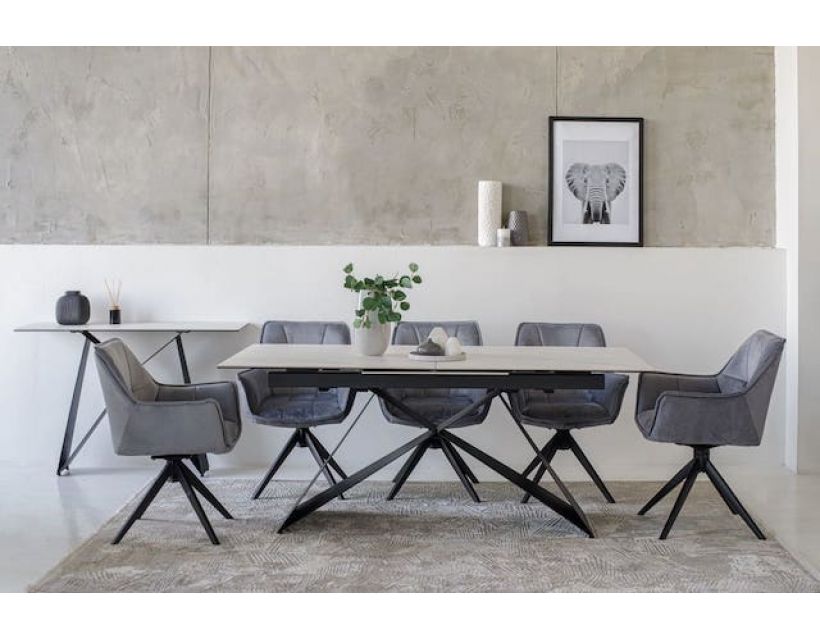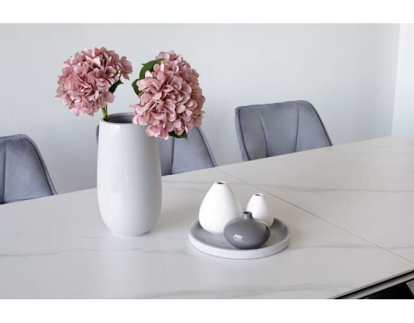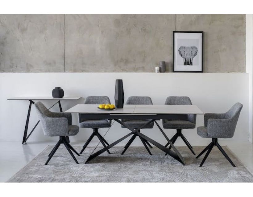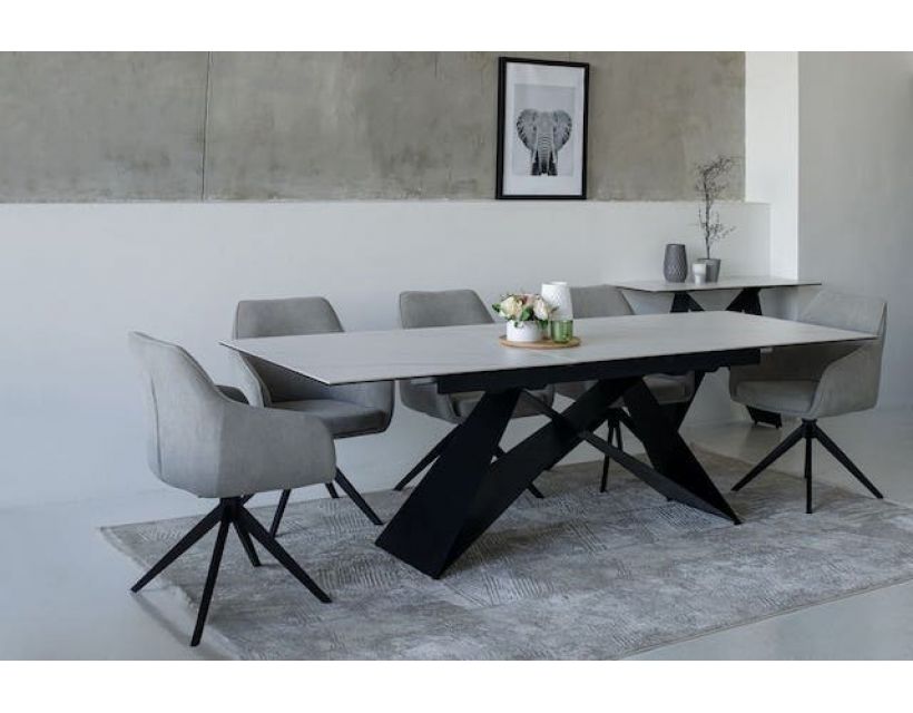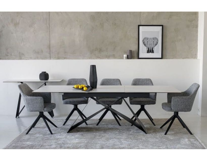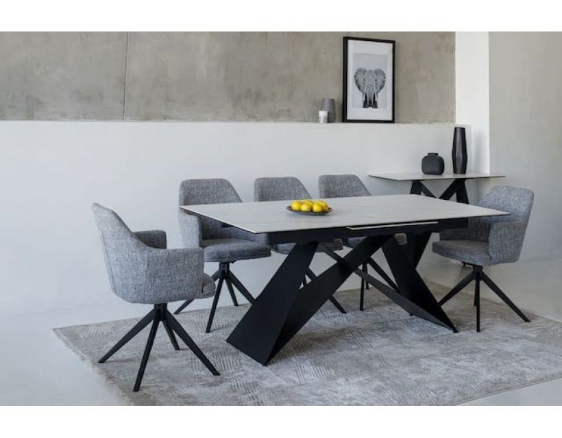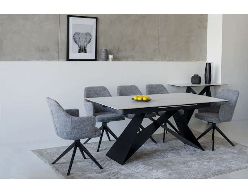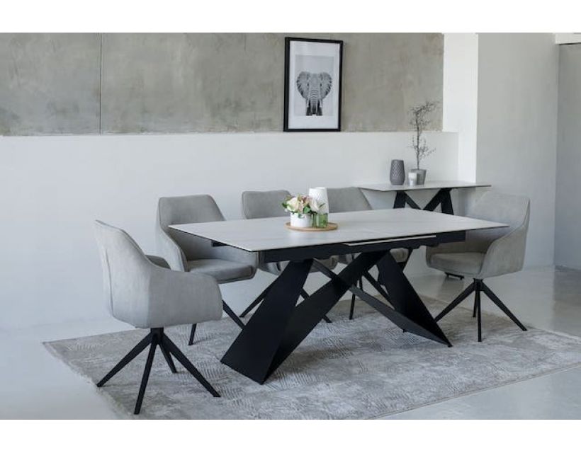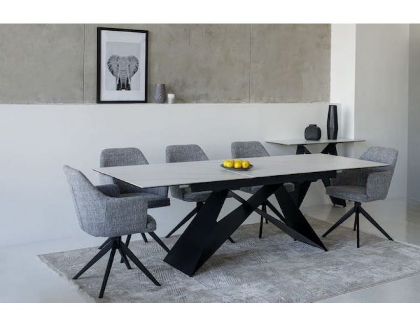 Матеріал Вкладки: Матова кераміка, гартоване скло - Вставка столу також виконана з матової кераміки та гартованого скла, забезпечуючи столу цілісний і стильний вигляд.