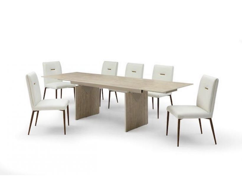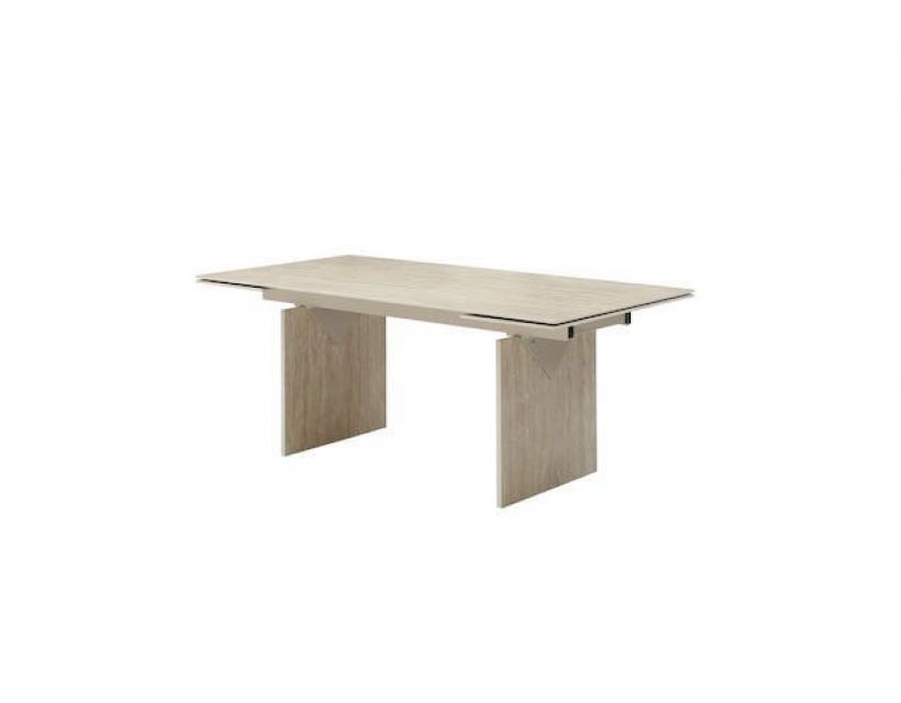 Обідній стіл Травертін має довжину 180 см, яка може збільшуватися до 260 см, ширину 90 см та висоту 76 см. Вага столу становить 140.40 кг, що гарантує його стабільність та надійність.
