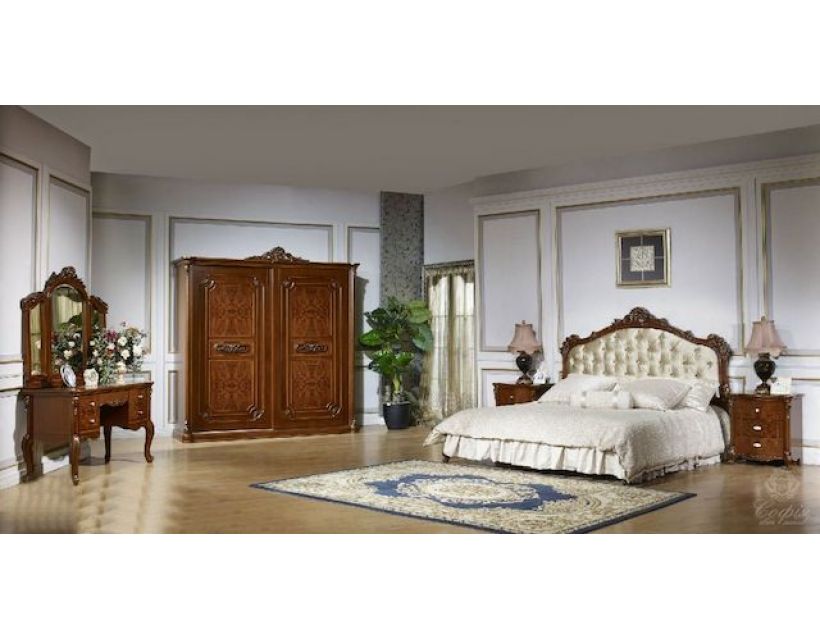 Якщо ви бажаєте купити спальню, яка стане справжньою перлиною вашого інтер'єру - класична спальня Флоренція Sofiya 180x200 см із МДФ у відтінку горіха з золотою патиною саме те, що потрібно. Цей розкішний спальний гарнітур створений для тих, хто цінує естетику, якість та комфорт у кожній деталі.
