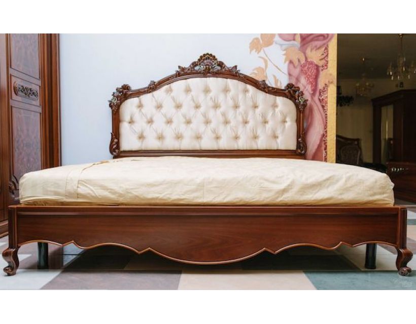 Модель Флоренція - втілення вишуканої класики. Елегантне двоспальне ліжко з оригінальним узголів'ям у формі вигнутих країв дарує особливий шарм кімнаті. Вироблене з якісного МДФ, оздоблене золотою патиною та матовим горіховим відтінком, воно легко впишеться в класичний або неокласичний інтер’єр.
