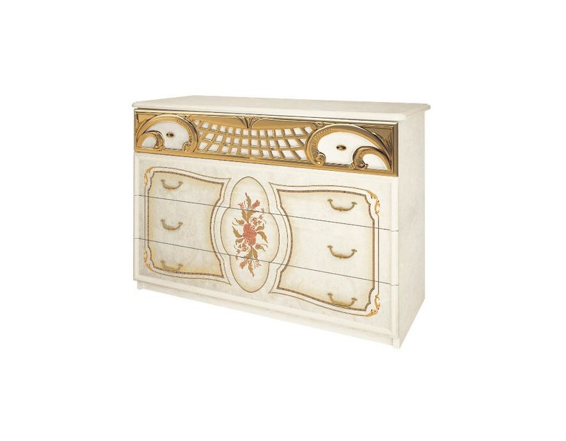 Комод 4шх, спальня Реджина голд, Міромарк, RGG-64-RB Опис - Комод 4шх, спальня Реджина голд, Міромарк, RGG-64-RB Особливий та вишуканий, незабутній та зразковий, казковий та оригінальний комод чудової модульної спальні з вишуканими від унікального виробника Міромарк точно доповнить Вашу вишукану спальню. Додаткові відомості: - Колір виробу може відрізнятись від того, що ви бачите на екрані. Це може бути пов'язане з налаштуваннями вашого екрану. Зверніть увагу на те, що більшість меблів приїжджає в розібраному стані! У комплект поставки входять усі комплектуючі та інструкція для збирання. Складання меблів прораховується окремо і залежить від комплектації виробника. За додатковою інформацією звертайтесь до менеджерів магазину.Кольорова гама:Радика беж Опис матеріалів: ЛДСП (ламінована деревинно-стружкова плита) - це шліфована ДСП плита, покрита стійкою плівкою міламіну. Міцність ламінованого ДСП утворюється під дією температури внаслідок розтікання смоли на поверхню плити. Найкраща товщина плити ЛДСП для меблевих виробів має бути від 10 мм до 22 мм. Плівкова оболонка ЛДСП не дозволяє парам альдегіду поширюватися з поверхні ДСП, одночасно робить ламіновану гігієнічний плиту і екологічно нешкідливим матеріалом. Ламіноване ДСП застосовують при виготовленні меблів для кухні та будинку в цілому, офісних меблів тощо. Пластик - це матеріал, створений з нетоксичного, екологічно чистого поліпропілену. Меблі з пластику є легкими і не вимагають пильного догляду. Крім того, пластик чудово миється, навіть без спеціальних засобів.